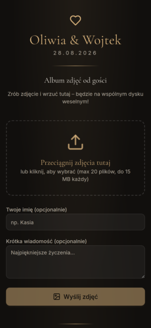 Gość może wysłać naraz 20 zdjęć oraz podpisać się i dodać krótką wiadomość.